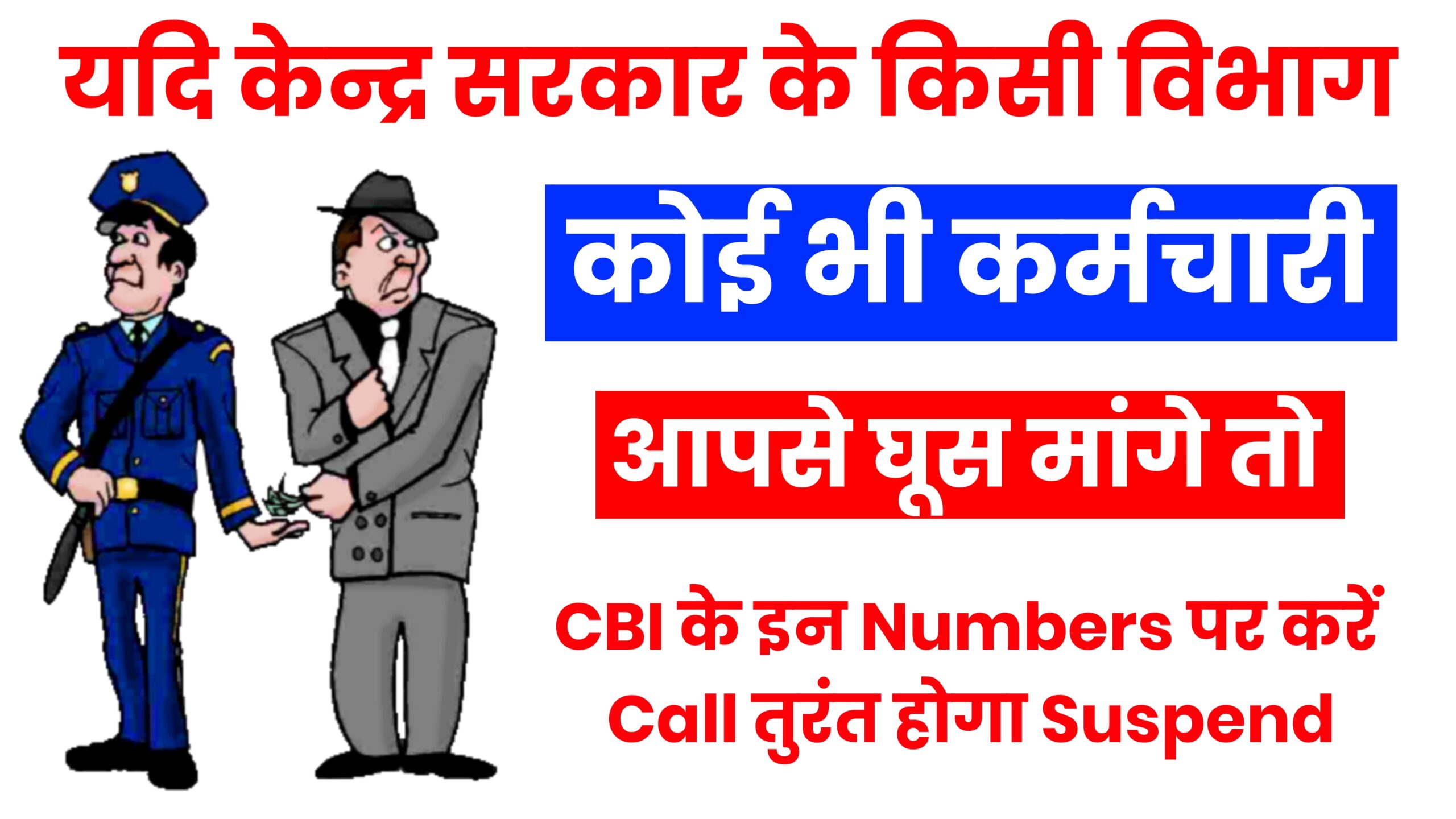 एक ना एक दिन ऐसा आता ही है जब हमे सरकारी कर्मचारी के पास जाना पड़ सकता है भले ही कोई भी काम हो। तो अगर आपसे वहां कोई भी व्यक्ति घुस मांगे तो तुरंत Phone / Call करें CBI Lucknow को तुरंत होगा suspend.